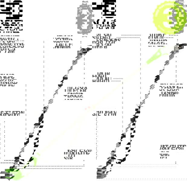 Make your life easier! With the 40V Greenworks battery-powered high pruner, you can safely cut your branches from the ground. With the aluminium telescopic pole that can be extended variably up to 2. 4m, even higher branches can be reached effortlessly. With a chain length of 20 cm and a chain speed of 8m/s, the G40PS20K2 high pruner takes you through gardening efficiently and comfortably. Even transport is effortless thanks to the shaft that can be dismantled into 3 parts. In addition to a beautiful garden, the pole pruner also gives you a clear conscience: Due to the battery operation, there are no direct emissions or dangerous exhaust fumes. Enjoy your gardening without annoying noise and low vibrations. Use the pole pruner in every corner of your garden, without impractical extension cables.