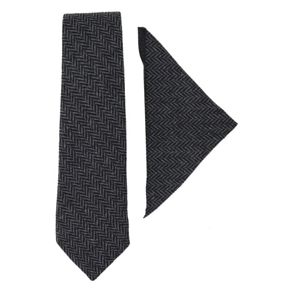 Men's Tweed Tie Hankie Set Classic British Heritage Wool Herringbone