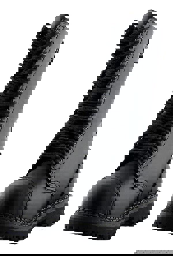The mens Herald Derby boot from Grinders with its chunky styling and Goodyear Welted sole gives a great look and durability. The uppers are made from quality black leather which gives a great fit and feel whilst the 14 eye lace up system adds character and allows an adjustable fit to the foot and leg. Inside, a cushioned footbed adds support and comfort and is completed with a sturdy outsole with a grip cog tread for extra traction underfoot. The lth Grinders Herald pull on safety boot is a must have.