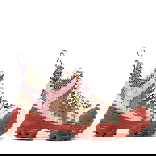 Finished in a striking mix of pink and rust tones with multicolour accents, the layered design features breathable mesh panels and tactile suede overlays for depth and contrast. The chunky rubber sole delivers both comfort and impact, while the embossed Gucci logo to the toe and rubberised red Gucci logo on the tongue add unmistakable brand identity.