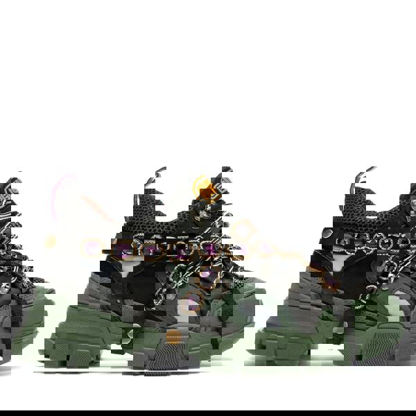 Bold, expressive and unmistakably Gucci, these Flashtrek trainers elevate the iconic chunky sneaker with high-fashion embellishment. Crafted in Italy from a mix of premium suede, leather and durable rubber, this statement pair combines technical performance with luxury detailing.