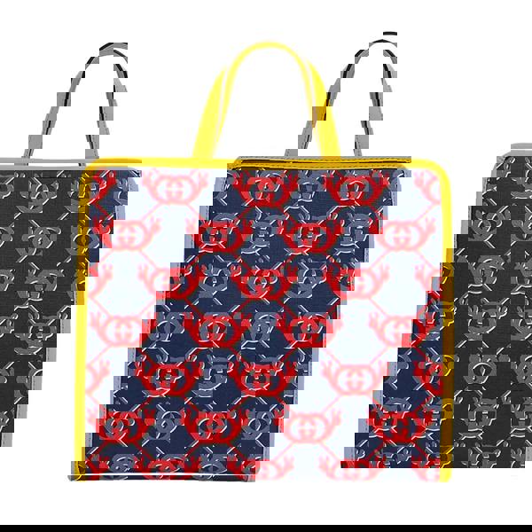 Bold, playful and instantly recognisable, this Gucci tote bag showcases the house’s iconic Interlocking G monogram in a striking ink blue, red and white pattern. Framed with vibrant yellow leather trim and top handles, it delivers a fresh, contemporary take on one of Gucci’s most celebrated motifs.