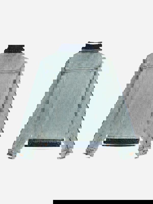 This boys denim jacket from Guess comes in a double indigo finish with a washed-out effect, dark at the front and lighter at the back. A collared neckline and long sleeves give it a classic jacket shape, while panel detailing adds structure to the design. Bronze metal buttons complete the front fastening.