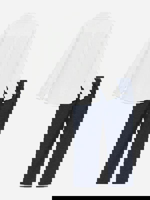 This boys’ shirt and trousers set from Guess comes in blue and white twill. The shirt includes an imitation vest detail and a bow tie, creating a coordinated look within a single piece. A button fastening and logo detail complete the design.