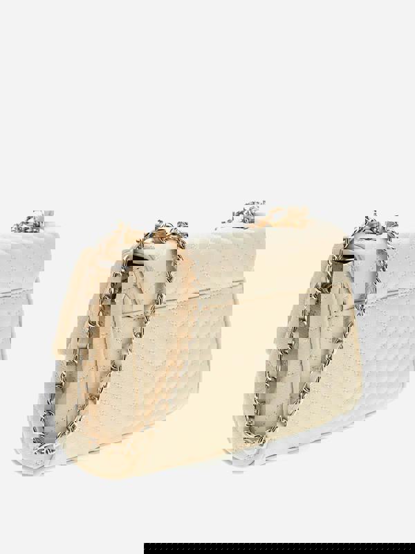 Bringing passion and enigmatic elegance to a Californian aesthetic, this Guess girls crossbody bag is finished in a soft butter ice cream shade. Designed for everyday outings, it offers a compact way to carry essentials while keeping hands free. Quilted detailing adds texture, while Guess embellishments provide a signature finishing touch.