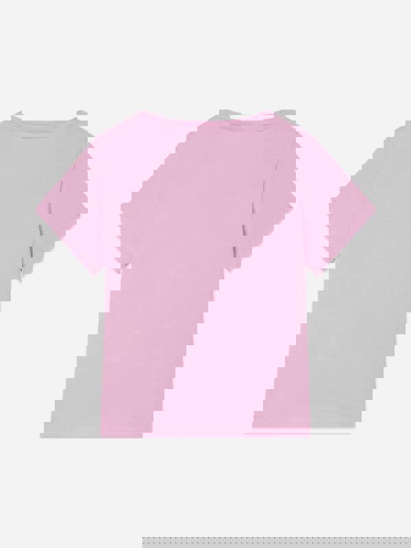 This girls’ logo T-shirt from Guess comes in blooming azalea pink with a clean, everyday shape. Made in cotton jersey with organic cotton fibres, it offers a soft, simple base for casual outfits. Short sleeves and a round neckline keep the look classic, while the sequin triangle logo adds a distinctive branded finish.