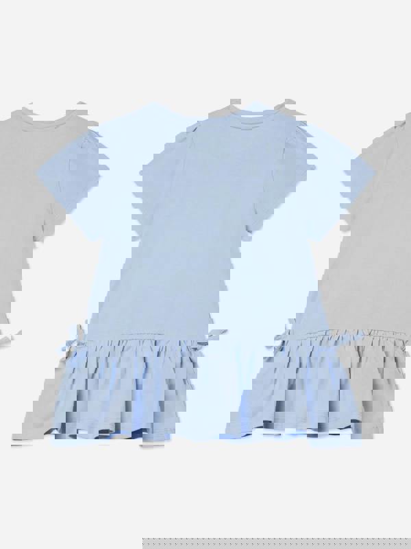 This girls’ light blue sky T-shirt from Guess pairs a round neck and short sleeves with a tiered, flared peplum hem. The front carries a Guess LOVE 1981 logo finished with pink sequins and silver embroidery for a standout look.