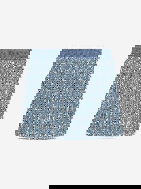 This Guess girls skirt comes in blue denim with sequin detailing for a standout finish. The classic denim look is combined with a shimmering surface, making it suitable for parties and casual outings.