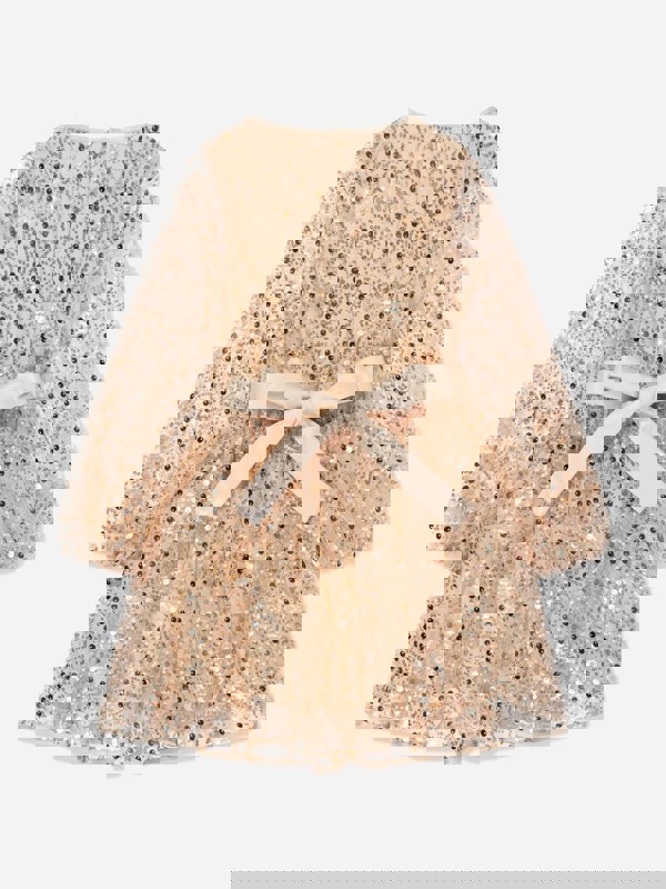 Guess brings uncomplicated elegance to a Californian aesthetic. This girls sequin tulle dress comes in beige with golden sparkling sequins, a luxe bow and rhinestone details. A round neck keeps the look clean, while the slip-on style makes it easy to wear. A zip fastening completes the finish.