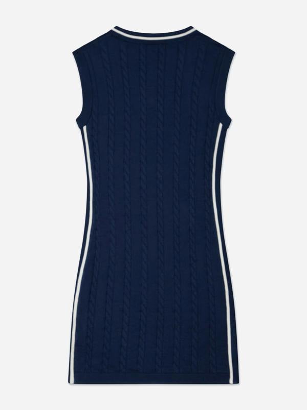 This girls sleeveless knitted dress by Guess comes in navy for a clean, versatile look. The knitted construction gives it a distinctive texture, while the sleeveless cut keeps the silhouette simple and easy to wear.
