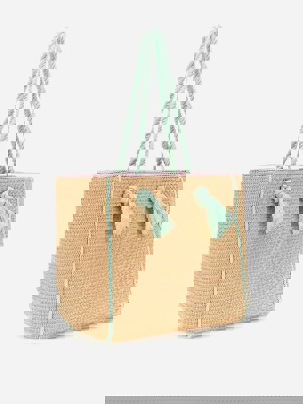 A chic addition to a young lady’s accessory collection, this tote bag is crafted from straw for a classic, summery look.