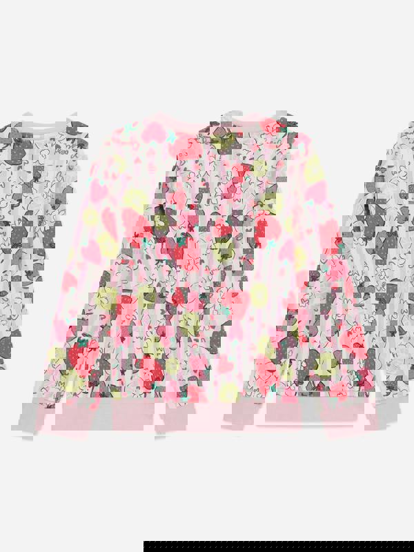 This girls sweatshirt by Guess comes in pink with a strawberry logo print. A simple wardrobe piece with a bold graphic finish, it brings a playful look through the strawberry motif and clear branding.