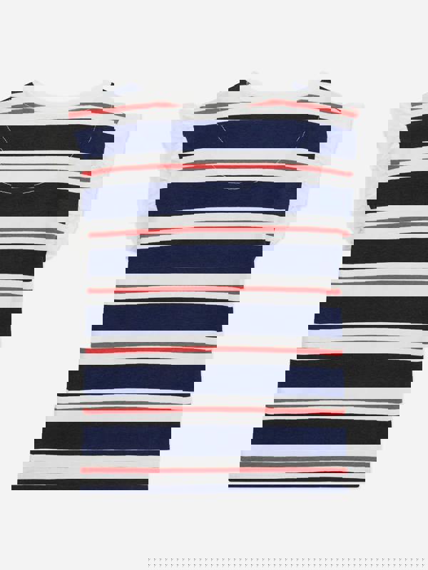 This girls’ top from Guess comes in navy with an all-over blue and white striped design. A ribbed round neck and sleeveless cut keep the finish clean and simple, while ruffles at the sleeves add extra detail. The front is completed with Guess Girl heart embroidery for a branded touch.
