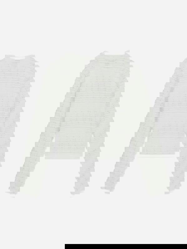 This girls tweed cardigan in white brings a clean, structured look with a round neck and long sleeves. Embellished silver buttons run through the front, adding a polished finish. Front effect pockets complete the design with a neat, tailored appearance.