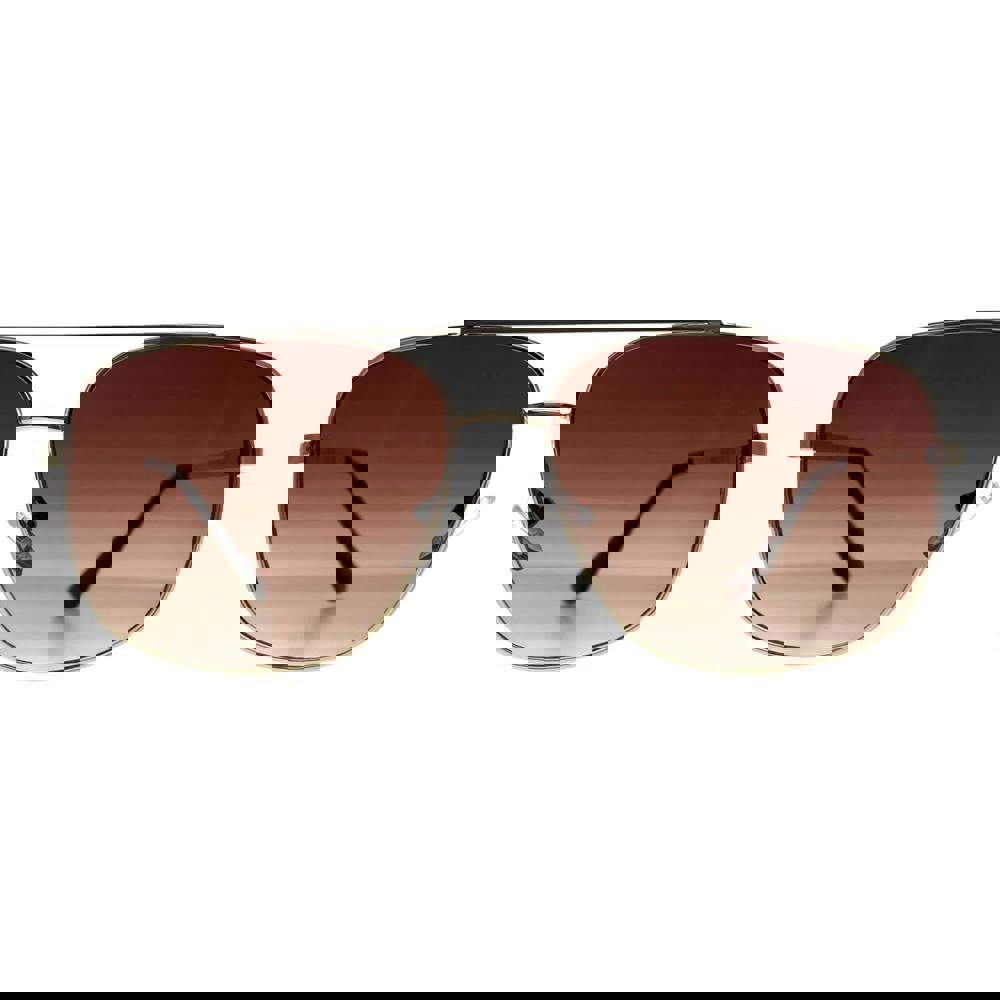 A bold aviator silhouette sets the tone for the Guess GF0207 32F sunglasses. Finished in gold, the sleek metal frame brings a clean, modern edge to a classic shape, while the brown gradient lenses add a refined contrast. Easy to style with everyday looks, this pair balances statement design with a polished, wearable feel.