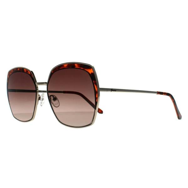 Bring a polished finish to everyday looks with the Guess GF0410 32F sunglasses. This cat-eye pair combines a gold frame with brown gradient lenses, balancing a classic silhouette with a more contemporary edge. Glossy surfaces, gentle curves and sculpted lines give the shape definition, while signature Guess detailing along the arms keeps the design unmistakably branded. A lightweight construction supports comfortable wear, making it an easy choice for regular styling.