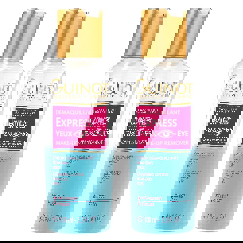Guinot Demaquillant Express Yeux is an eye make-up remover suitable for all skin types, easily removing all types of make-up, even waterproof, leaving no greasy residue.