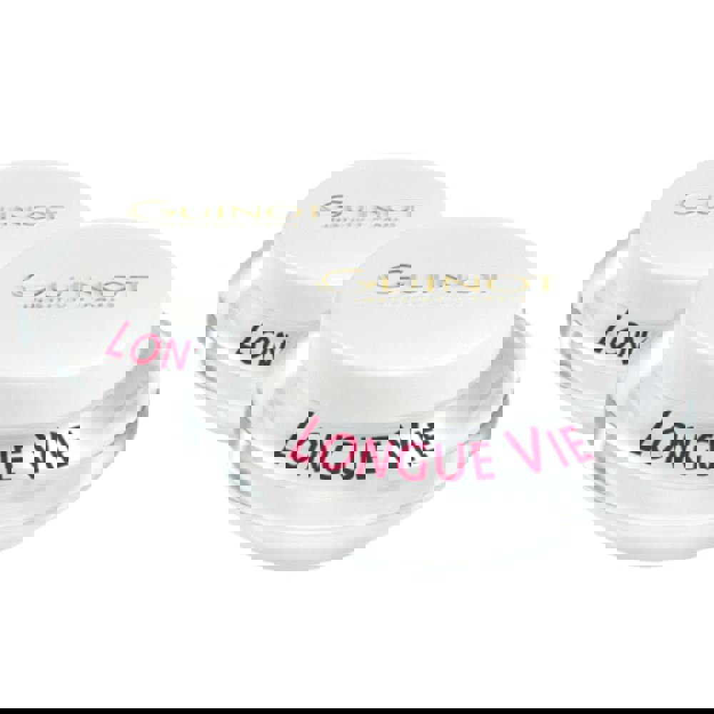 Guinot Longue Vie Treatment Double Duo brings together two 50ml Longue Vie creams in one convenient set. This regenerating care cream is packed with vital nutrients, vitamins and amino acids to rejuvenate the appearance of the complexion and revitalise skin from the first application.