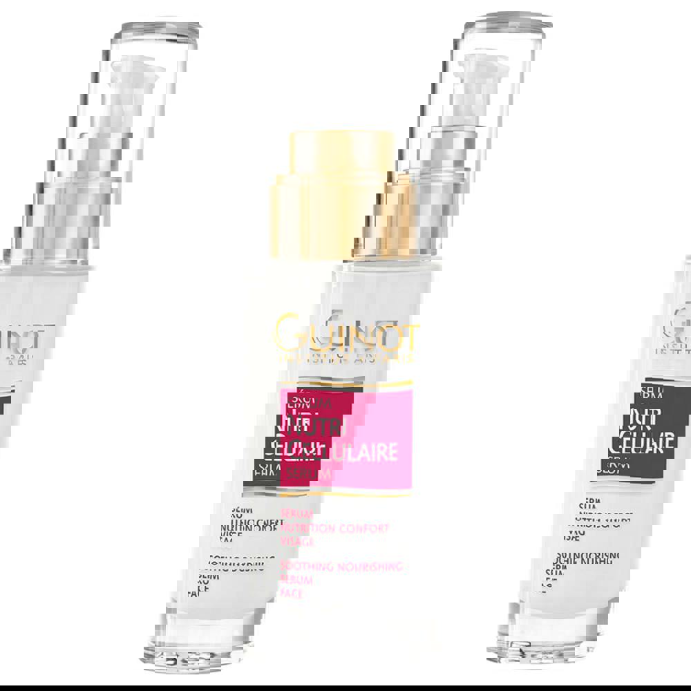 Guinot Serum Nutri Cellularire is a light-weight soothing serum that deeply nourishes the skin for maximum comfort. It contains Pro-Ceramides which replenish depleted skin lipidss by encouraging better cellular cohesion, for healthy, beautiful skin. Omega 3 and 6 strengthen the skin's natural defenses and Vitamin E guards against free-radical damage. Mango Butter, Shea Butter and Macadamia Oil all combine to give intensive nourishment. The skin is left supple, more refined and radiant with health