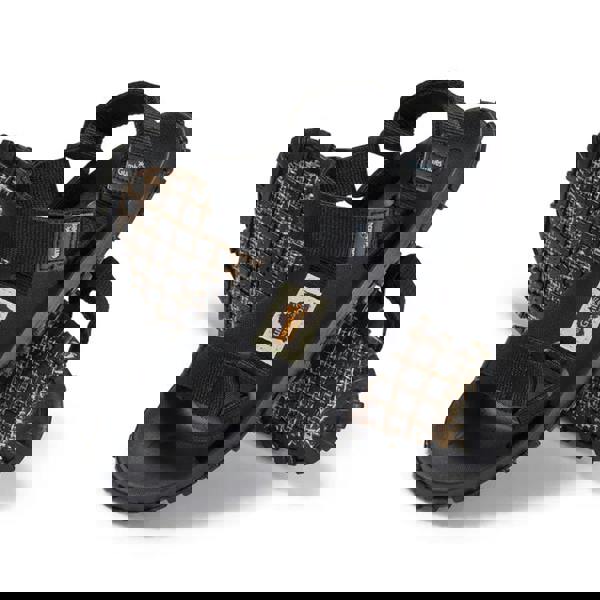 Unisex sandals with a contoured footbed and recycled PET upper. Features a flat heel, textile lining, and recycled rubber sole, suitable for casual wear and easy to fasten