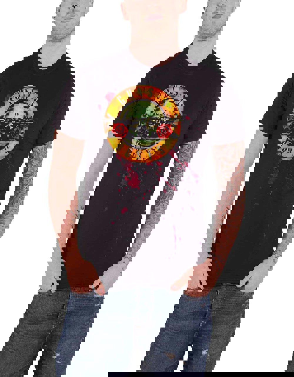 An official licensed Guns N Roses Guns N Roses Tee featuring the 'Bullet' design motif. This high quality t-shirt design is available in the black colourway. We offer a range of sizes from Small through XX-Large, subject to stock availability.