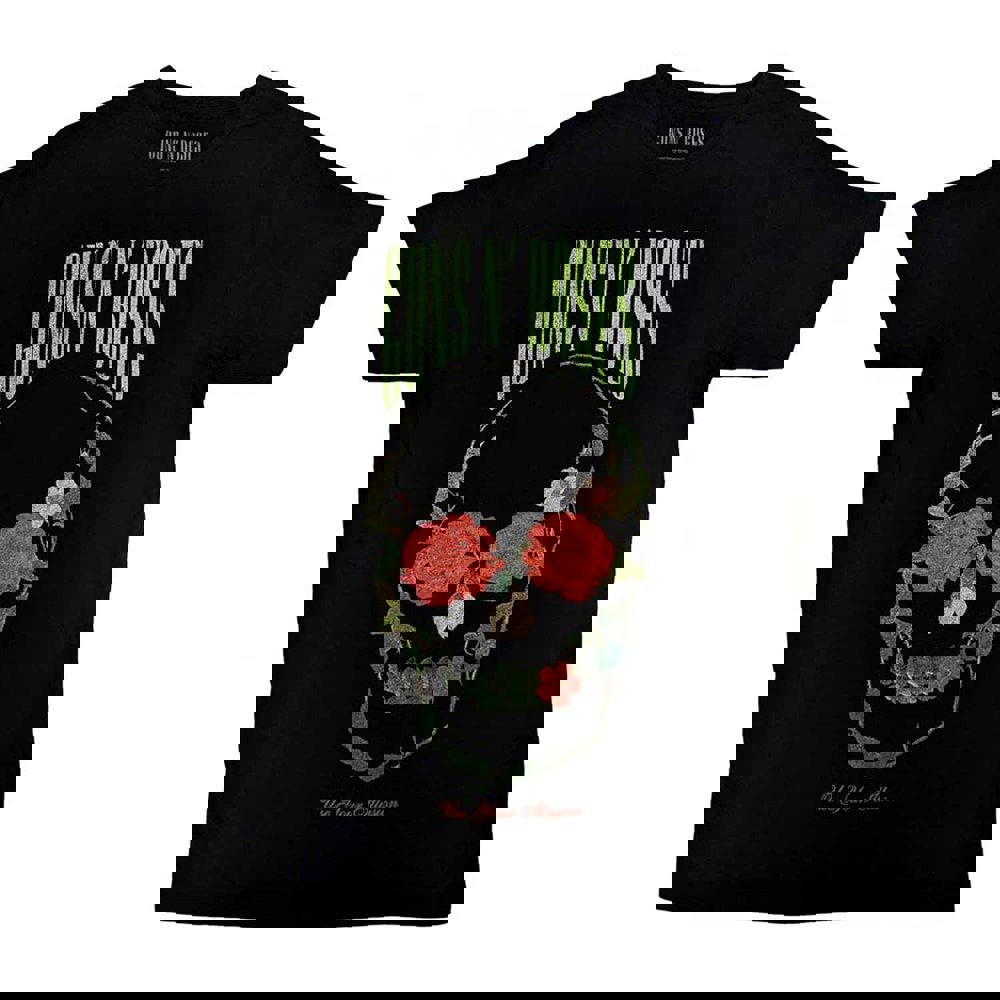 Official licensed Guns N' Roses Unisex T-Shirt featuring the 'Rose Skull' design motif. High quality T-Shirt available in a black colourway. High quality soft-style cotton unisex t-shirt featuring front printing. Comes in a wide range of sizes from Small through XX-Large, subject to availability.