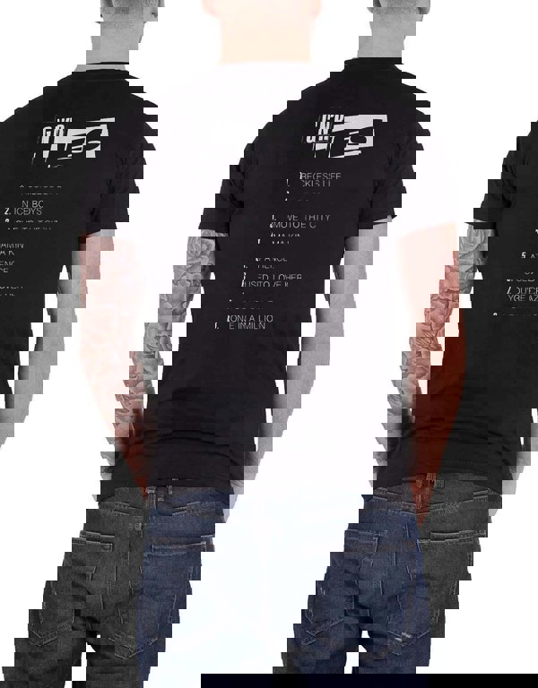 An official licensed Guns N Roses Guns N Roses Tee featuring the 'Lies Track List' design motif. This high quality t-shirt design is available in the black colourway. Classic fit tee in soft-style cotton with crew neck. Features front and back print. Available in a wide range of sizes from small through xx-large, subject to availability.