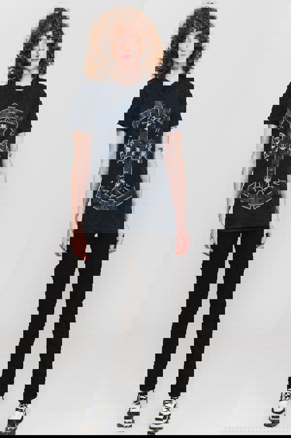 An official licensed unisex tshirt featuring the Guns N' Roses 'Monochrome Cross' design motif. This high quality tshirt is available in a dip-dye on black colourway. Classic unisex fit cotton tshirt with short sleeves and crew neck with front print. Features stunning dip-dye finish. A unique range of 100% cotton dip-dye official licensed tees. Comes in a wide range of sizes from Small through XX-Large, subject to availability.