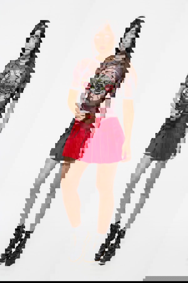 An official licensed Guns N' Roses Ladies Mesh Crop Top featuring the 'Pink Tint Logo ' design motif. This high quality Mesh Crop Top is available in a black colourway. Refined and stylish, this exquisite mesh fitted Mesh Crop Top embodies the essence of high fashion. Crafted with meticulous attention to detail, it boasts a mesmerizing all-over sublimation print that extends throughout. Comes in a wide range of sizes from XX-Small through X-Large, subject to availability.
