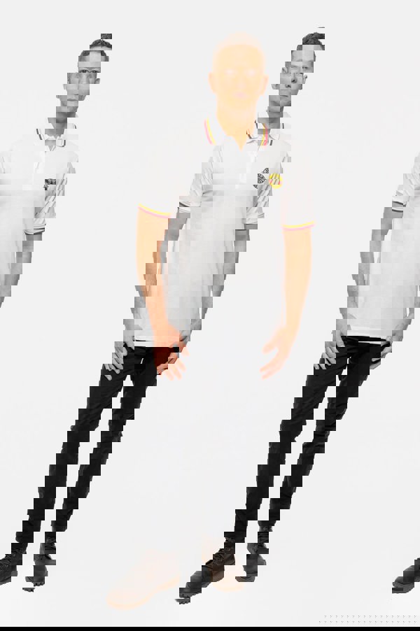 An official licensed Unisex Polo Shirt featuring the Guns N' Roses 'Classic Logo' design motif. This high quality garment is available in a white colourway. Unisex tipped polo shirt featuring tips to collar and sleeves in matching colourway. Embroidered design motif. Comes in a wide range of sizes from Small through XX-Large, subject to availability.