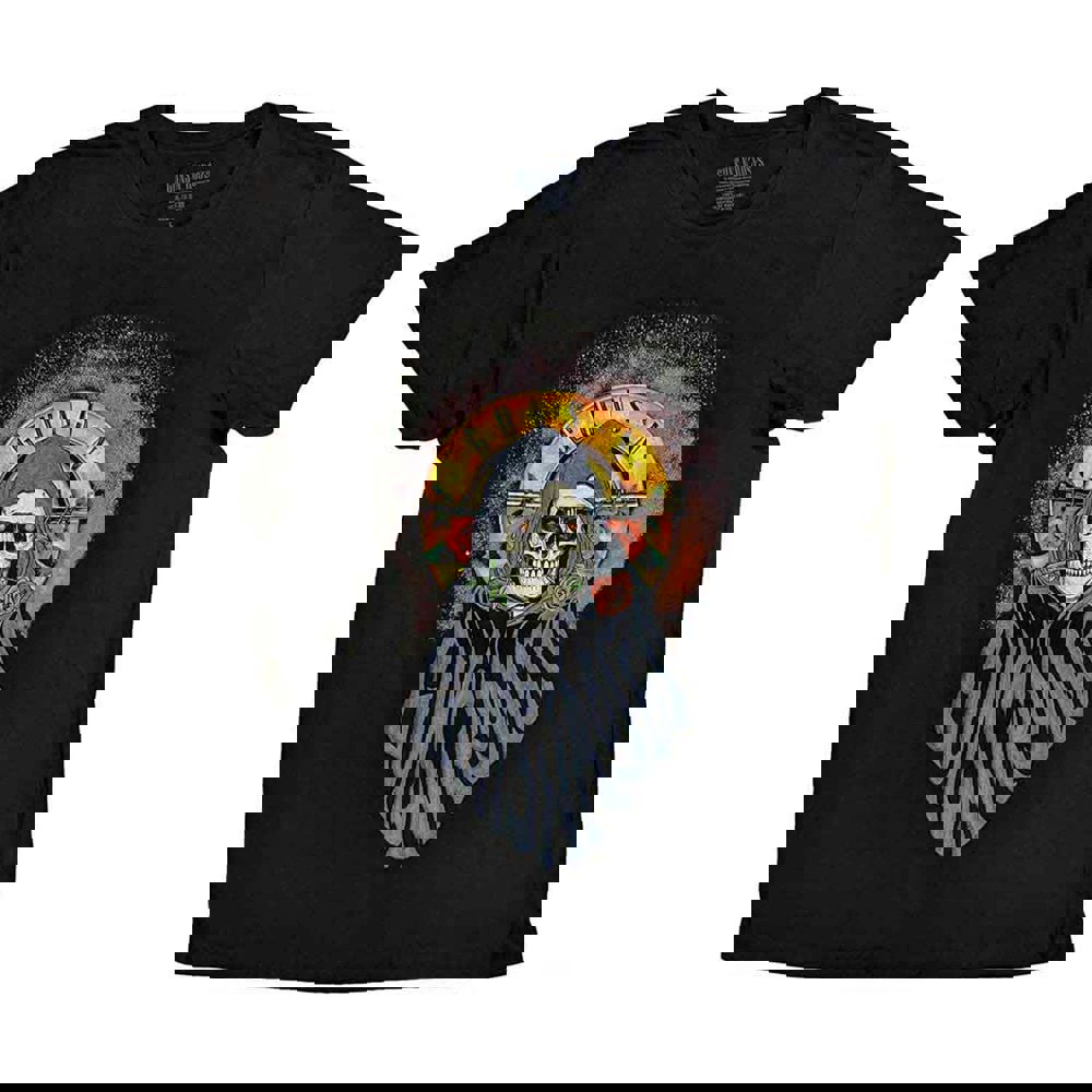 An official licensed Guns N' Roses Unisex T-Shirt featuring the 'Reaper' design motif. This high quality T-Shirt is available in a black colourway. High quality soft-style cotton unisex t-shirt featuring front printing. Comes in a wide range of sizes from Small through XX-Large, subject to availability.