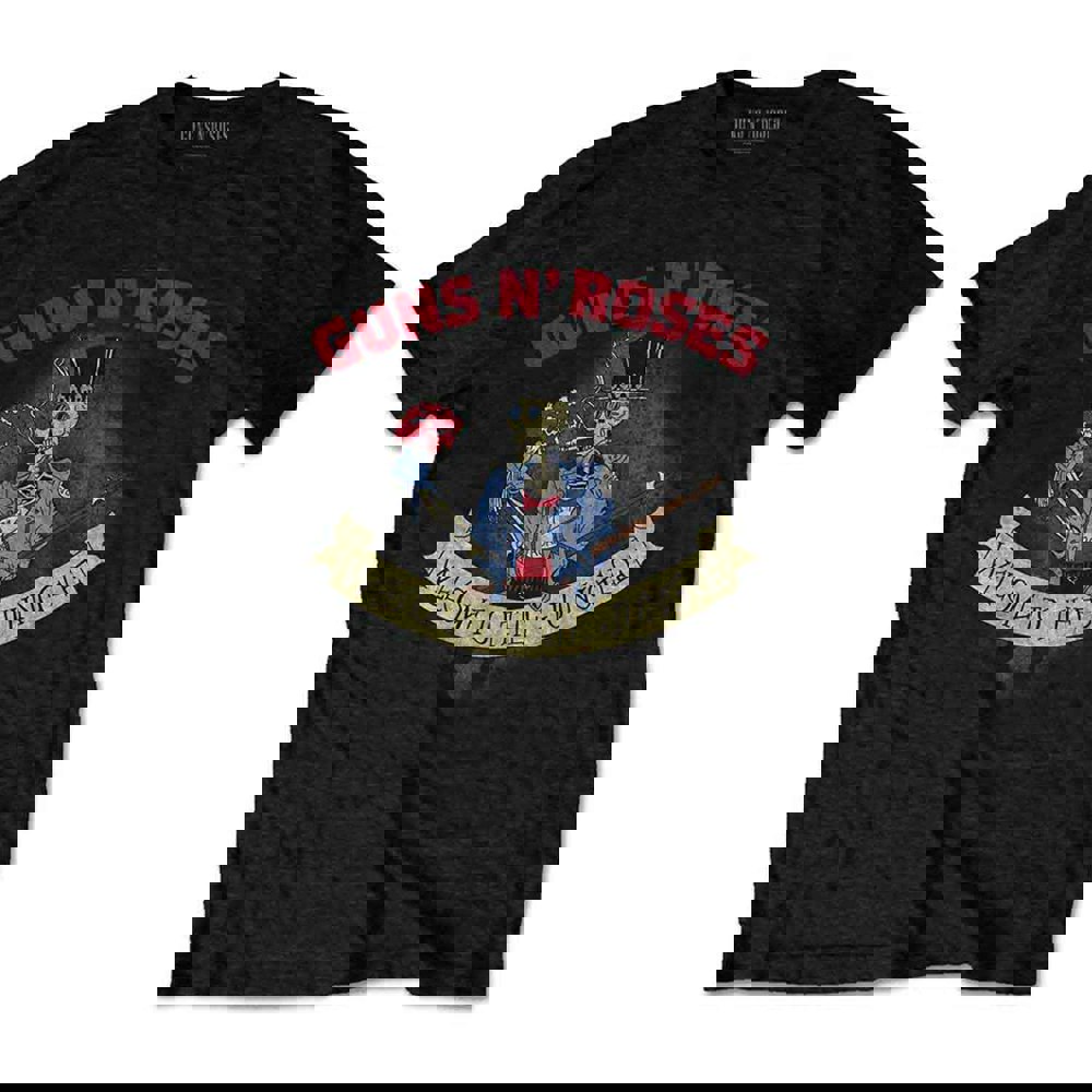 An official licensed Guns N' Roses Unisex T-Shirt featuring the 'Skeleton Vintage' design motif. This high quality T-Shirt is available in a black colourway. Classic fit short sleeved soft-style cotton tee with front printing. Comes in a wide range of sizes from Small through XX-Large, subject to availability.