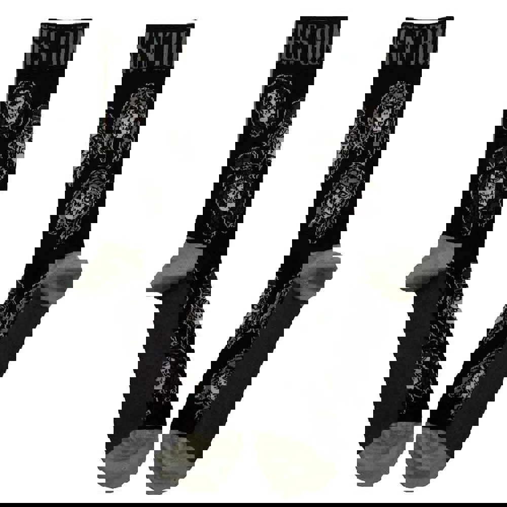 An official licensed Guns N' Roses Ankle Socks featuring the Skulls Band Monochrome design motif. 85% Cotton, 12% Polyamide, 2% Elastane