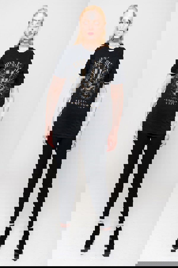 An official licensed Guns N Roses Guns N Roses Tee featuring the 'Top Hat, Skull & Pistols Las Vegas' design motif. This high quality t-shirt design is available in the black colourway. We offer a range of sizes from Small through XX-Large, subject to stock availability.