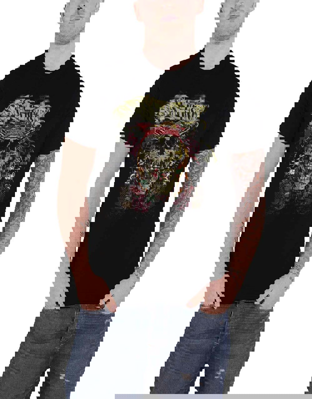 An official licensed Guns N Roses Guns N Roses Tee featuring the 'Trashy Skull' design motif. This high quality t-shirt design is available in the black colourway. Classic men's fit soft-style cotton tee with front and back printing. We offer a wide range of sizes from small through xx-large, subject to availability.