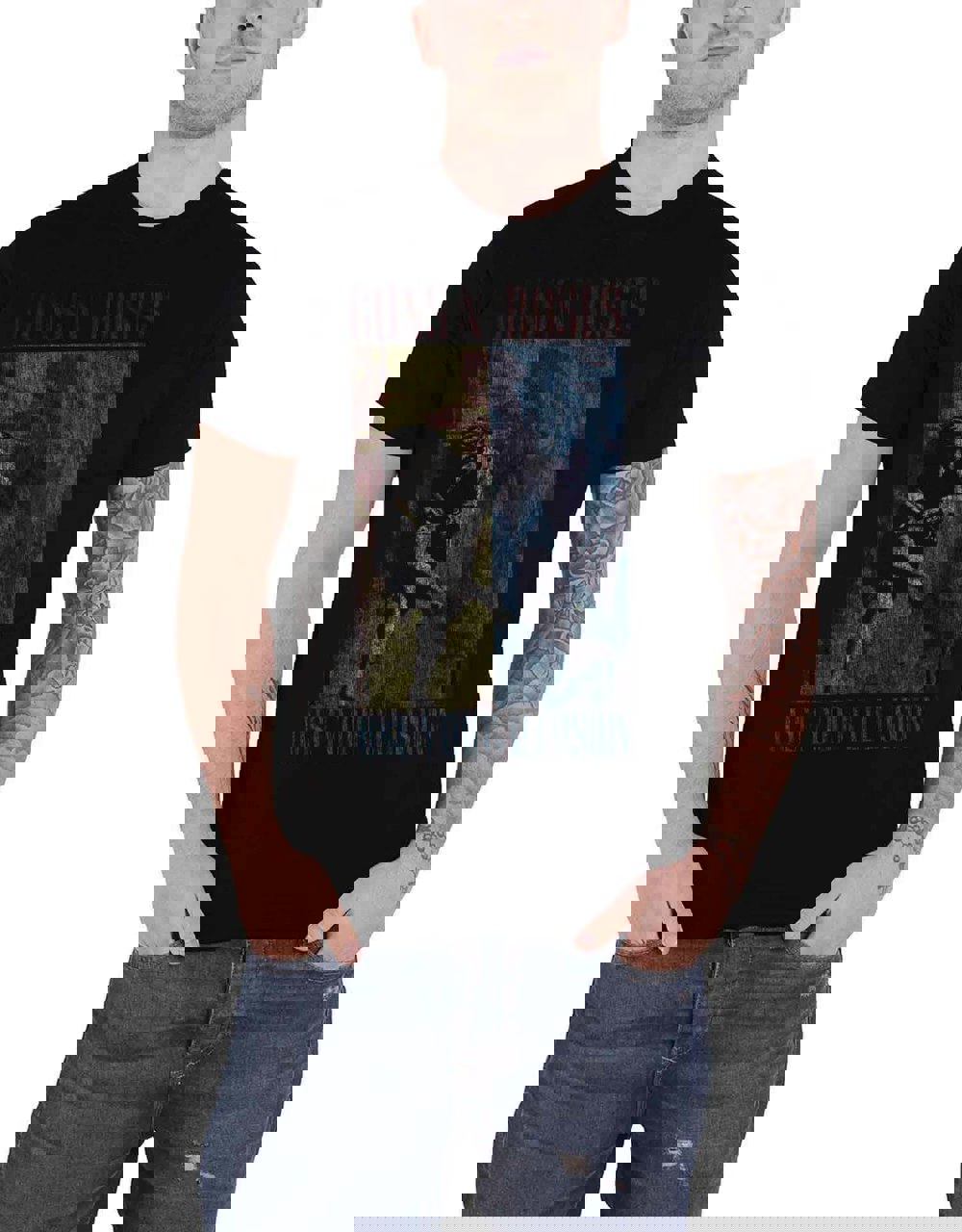 An official licensed Guns N Roses Guns N Roses Tee featuring the 'Use Your Illusion' design motif. This high quality t-shirt design is available in the black colourway. We offer a wide range of sizes from small through xx-large, subject to availability.