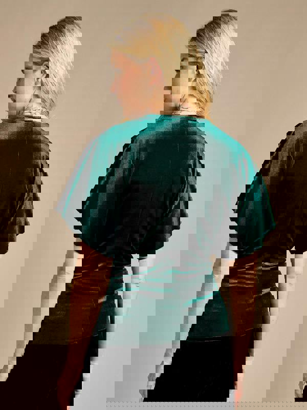 Combining timeless aesthetics with luxury, crafted with delicate velvet fabric, this wrap front top effortlessly skims the form. The soft neckline adds sophistication to this simple silhouette, while short sleeve sleeves adds idyllic coverage. Style this top with a tailored trouser to make a striking style statement at any occasion.