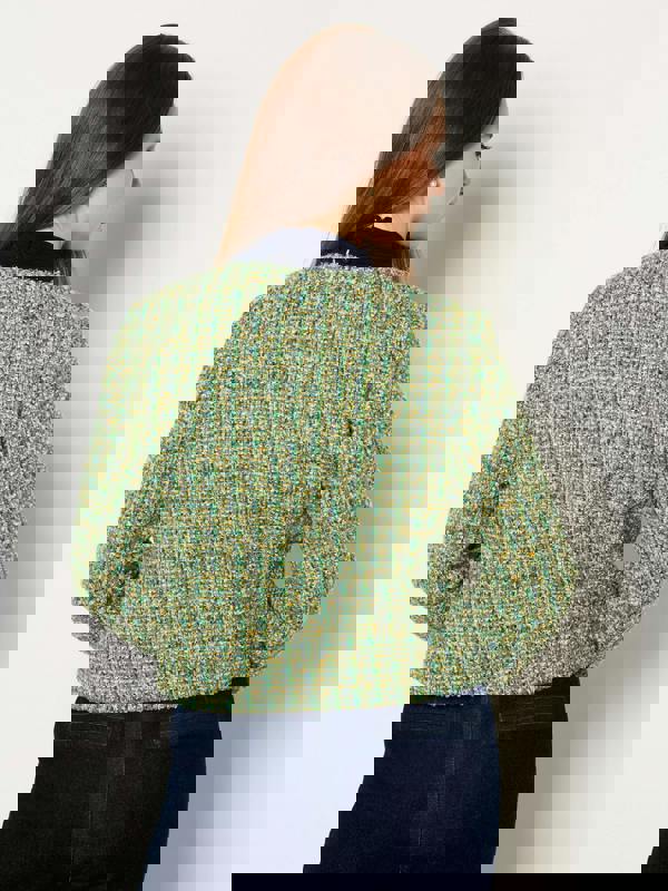 Add a splash of colour to your outerwear with the Chloe Anne Green Boucle Jacket, a statement piece for the fashion-forward woman. This elegant jacket features a luxurious green boucle fabric, long sleeves. The boucle trim detail adds an extra touch of sophistication, making it perfect for work, lunch dates, or an evening out. Pair it with tailored trousers or a skirt for a polished look.