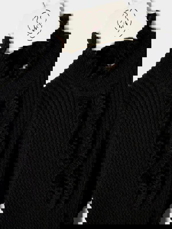 Cut from a soft rib with natural stretch, she’s designed to be slim enough to layer, yet comfy enough for all-day wear. The frill-trim high neck and cascading ruffle front give just the right amount of refinement — ideal under a pinafore, blazer or party dress when you need something elevated but fuss-free.