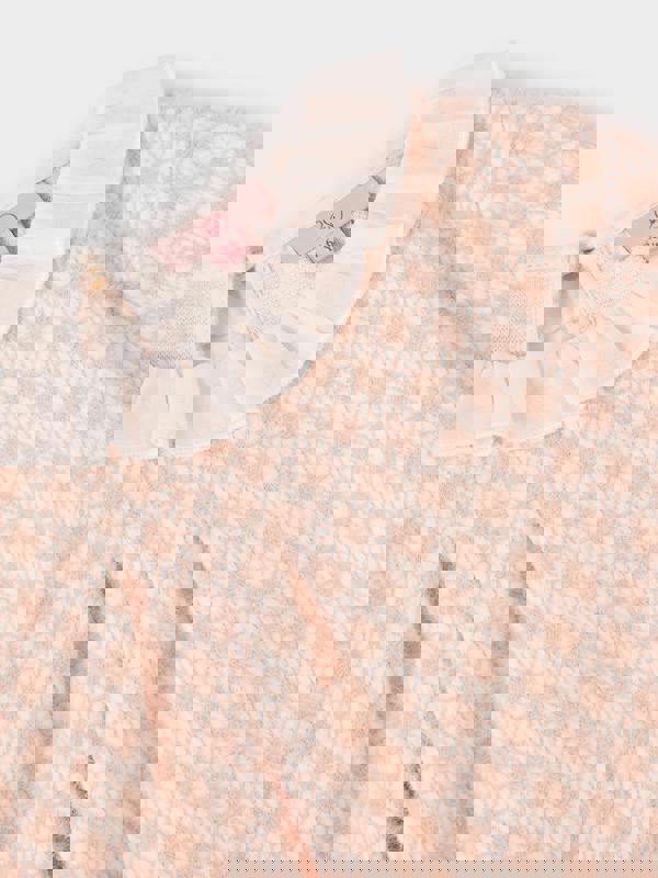 Let your child shine in the Jammy Pink Jacquard Dress, a perfect combination of comfort and style. This knee-length dress, adorned in a beautiful pink and white jacquard pattern, features a soft-touch, fluffy jacquard fabric and a frill collar for an extra touch of charm. Whether for a family gathering or a casual day out, the Jammy dress adds a sweet, cozy elegance to any occasion.