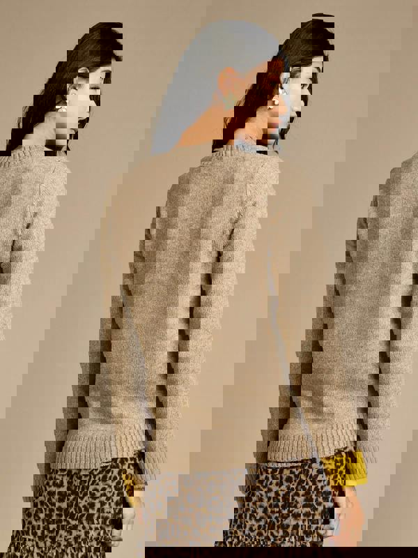 Elevate your knitwear collection with the Neave Brown Knit Corsage Jumper, a sophisticated piece that adds elegance to your wardrobe. This soft wool knit jumper in brown heather features contrast lime cuffs and a detachable cream corsage, perfect for adding a touch of femininity to any outfit. Whether you're heading to work, brunch, or a casual outing, this jumper offers a stylish yet Cosy look.