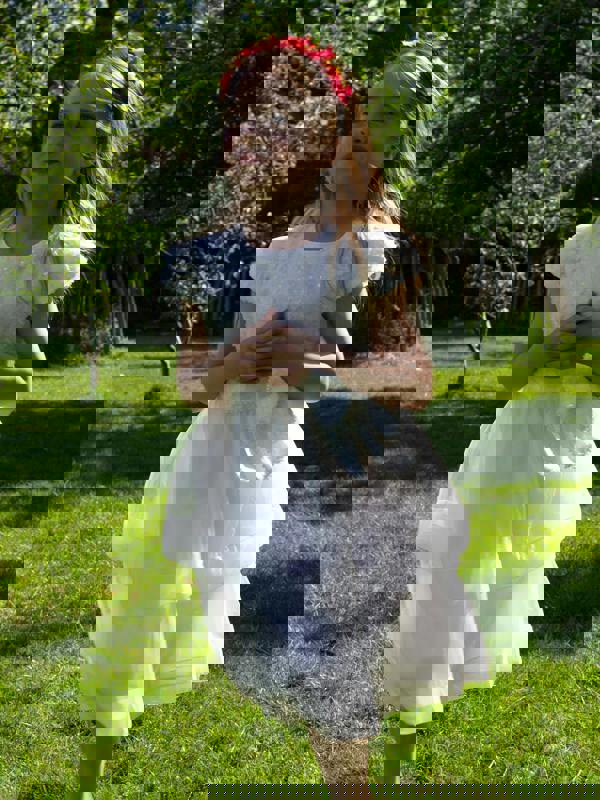 Make every moment magical in our Ribbon Belle Dress. With its sparkling sequins and dreamy layered skirt, this dress is designed for twirling, celebrating, and stealing the spotlight. Finished with a charming side bow, it’s a perfect choice for weddings, parties, and special days to remember. Just add sparkly flats and a hair clip to complete the look.