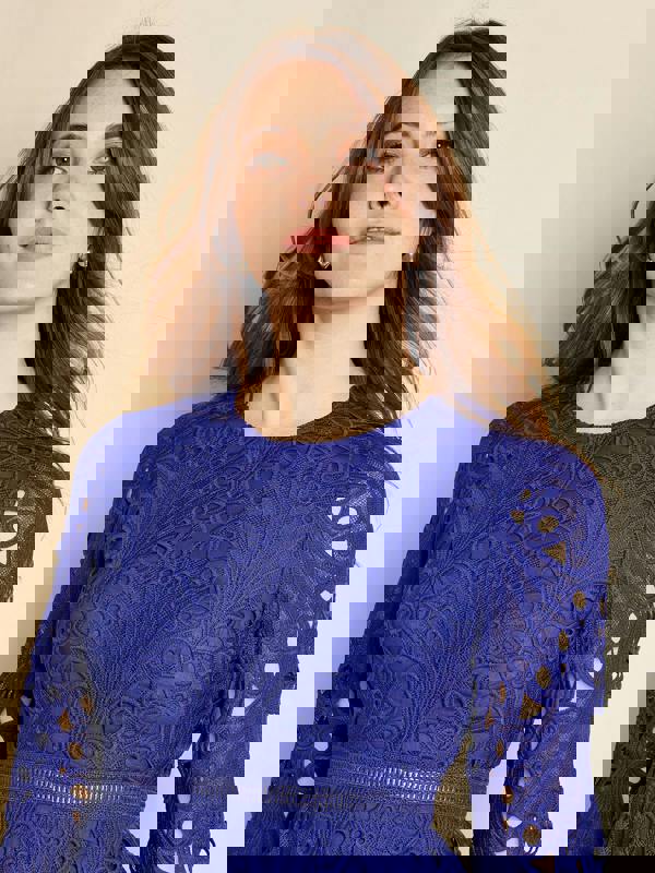 Elevate your style with the GWD Sheleigh Lace Dress. Crafted in beautifully designed rigid broderie lace, this A-line dress exudes timeless femininity. It features delicate lace trims, a round neckline, and long sleeves, with a full skirt finished with a scallop hem for an effortlessly elegant look. Perfect for garden parties, afternoon tea, or any special occasion.