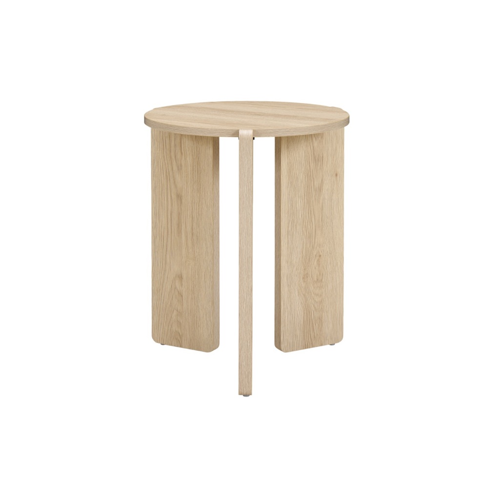 The Halo Side Table is a refined piece that balances modern minimalism with bold geometric design. Its circular woodgrain-effect top is supported by three rectangular legs with softly rounded edges, extending slightly beyond the surface to form a distinctive overlapping detail. Compact yet striking, it is a versatile table that works beautifully beside a sofa, bed, or armchair. Crafted with durable, sustainable materials, it makes an eco-conscious choice for contemporary living.