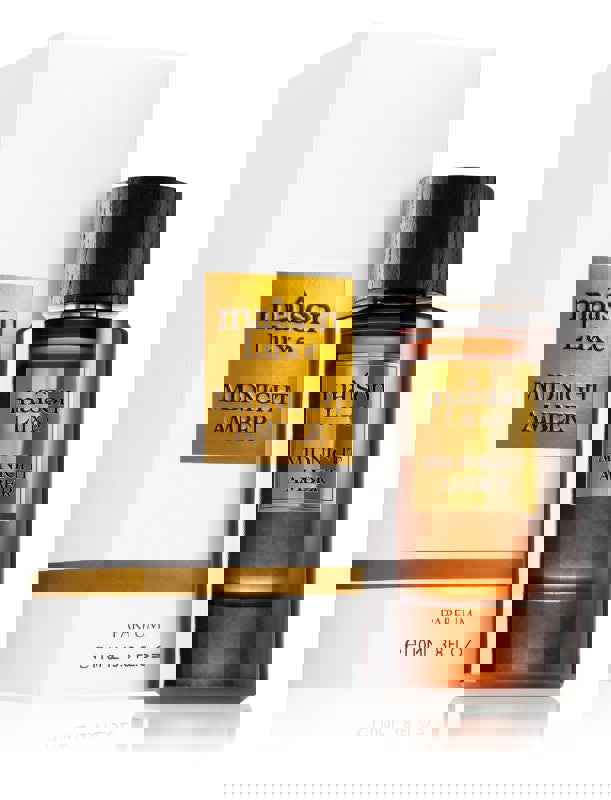 Discover HAMIDI Maison Luxe Midnight Amber Parfum 100ml; a captivating blend of Amber, Geranium, Rose, Saffron, Woody Notes, leading to elegant middle notes of Birch, Frankincense, and finishing with a warm balance of Amberwood, Benzoin, Oud.