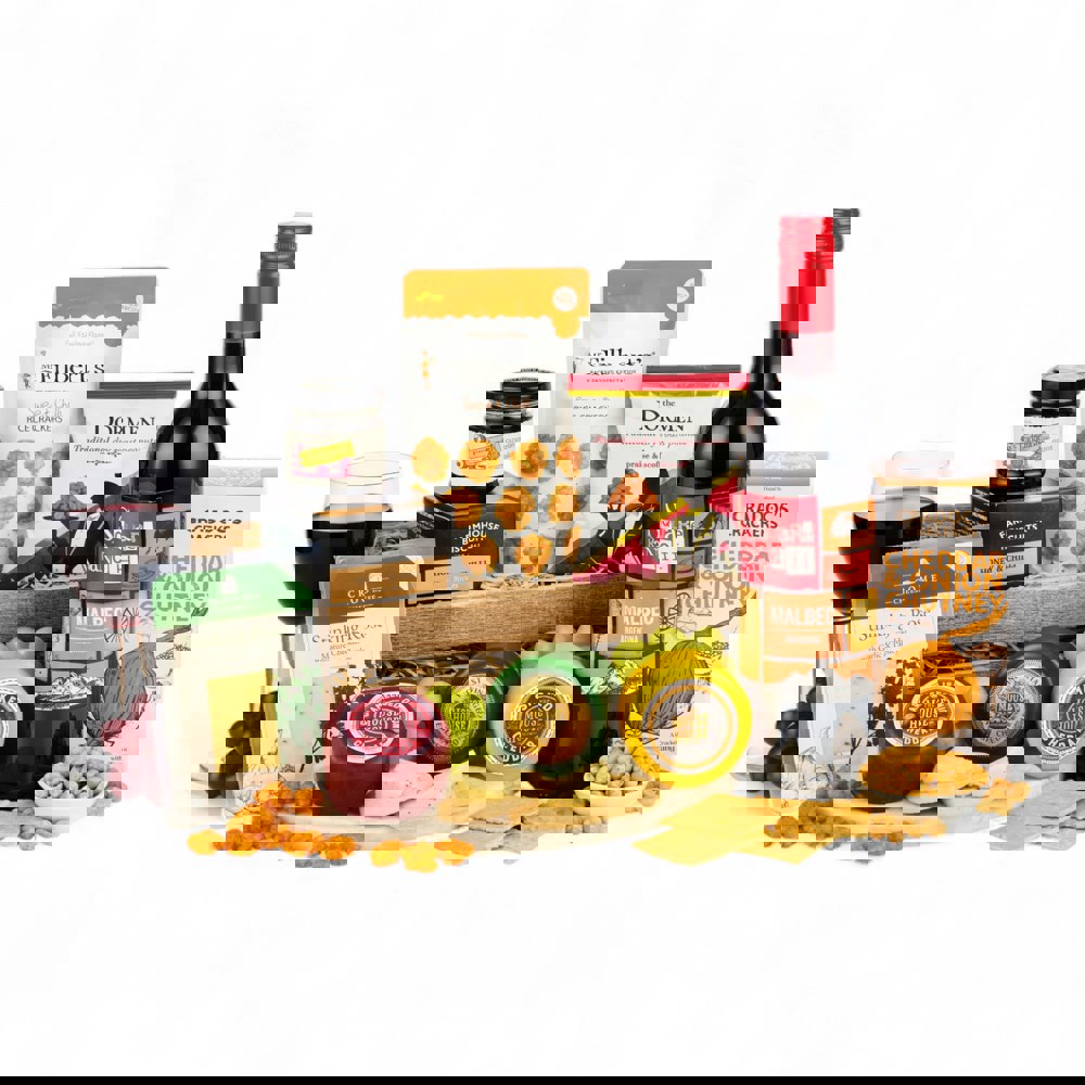 To complete the spread, savour artisan accompaniments including Farmhouse Honey & Chilli Biscuits, Cradoc’s Cheddar & Onion Chutney Crackers, and Tracklements Caramelised Onion Marmalade – all designed to complement the cheeses perfectly. For a satisfying crunch, enjoy Dormen Dry Roasted Peanuts and Mr Filbert’s Sweet Chilli Rice Crackers, adding a touch of spice and texture to your festive grazing.