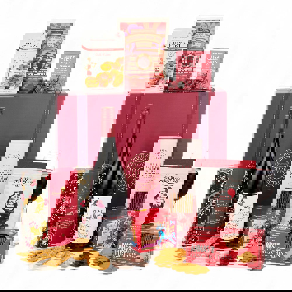 Rich, warm, and brimming with festive charm, The Redsleeves is a Christmas hamper that captures the heart of the season. Presented in a dark wicker-look gift box, it blends the elegance of fine red wine with an irresistible mix of seasonal indulgences.