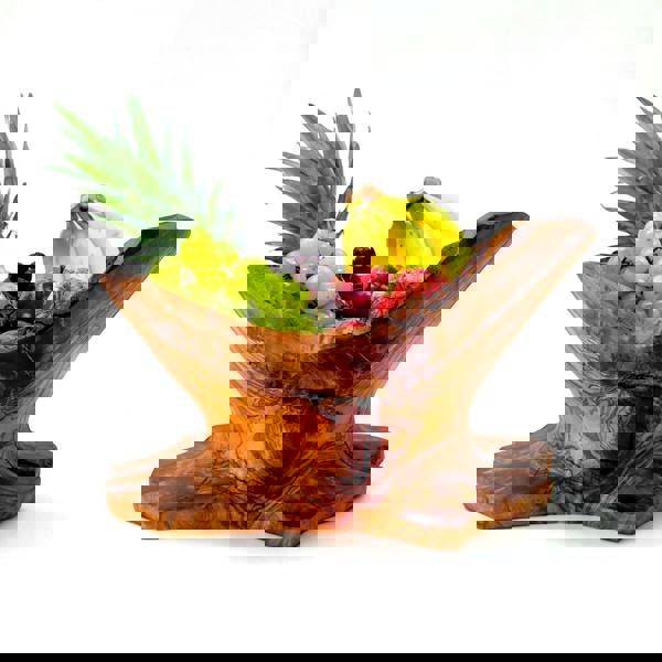 Hand carved by skilled artisans from a single piece of olive wood, this fruit basket celebrates real craftsmanship you can see and feel. The natural grain is left to do the talking, with each curve shaped by hand to create a sculptural, one-of-a-kind piece.