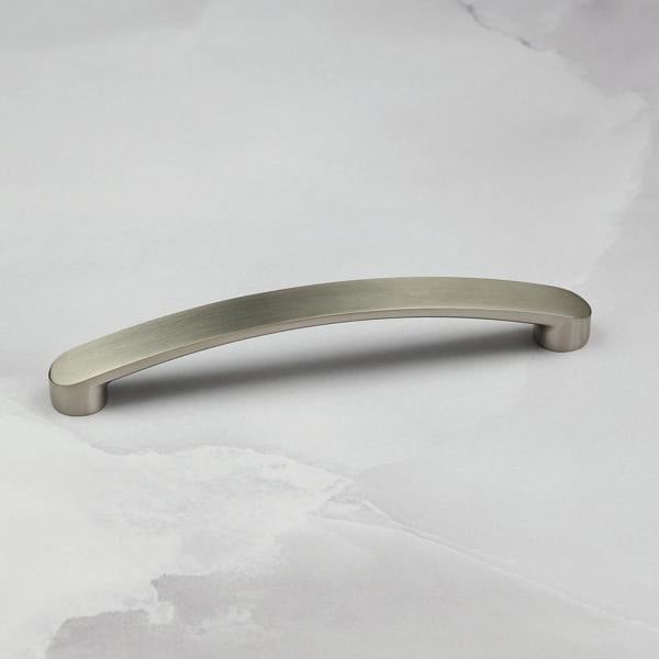 Add brushed nickel handles to your home for an instantly refreshed look. Silver toned nickel hardware is a modern, clean, neutral that will sit well with most other colours in the home. The arched bar pull, gently curved design and rounded ends of these cupboard handles results in a versatile, contemporary look. These handles make the perfect final touch to kitchen cupboard doors, drawers, furniture & wardrobes. With a semi-gloss coating, the light bounces off the handles when used vertically on cupboard doors or horizontally on drawer fronts. The nickel finish has visible brushstrokes adding depth & variation to this design. Choose this handle to easily lift & update any interior project with an easy bit of DIY.