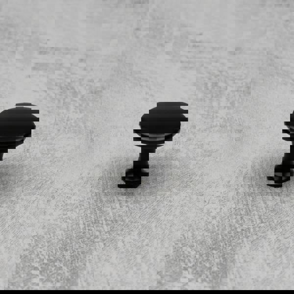Simple and classic, this dark, matt black knob offers a button mushroom shape and shaker style. Featuring a flat face, rounded edges and small rose, for an elegant, modern addition to a kitchen or bathroom. The muted, dark tones and matt surface provide a tasteful finish, an ideal choice in both functionality and aesthetic. This thoughtful design and traditional shape allow for use in modern style homes as well as more traditional styles. A versatile piece, in a popular, modern black finish can be utilised and enjoyed individually or paired together for a simple yet effective final touch on furniture and cabinets around the home.